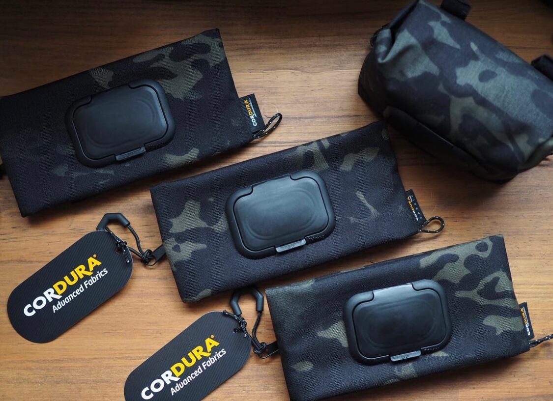 高性能なCORDURA 500D素材を使用した除菌シートケース。しっかりとした厚みと耐久性があり、長期間の使用にも安心です。