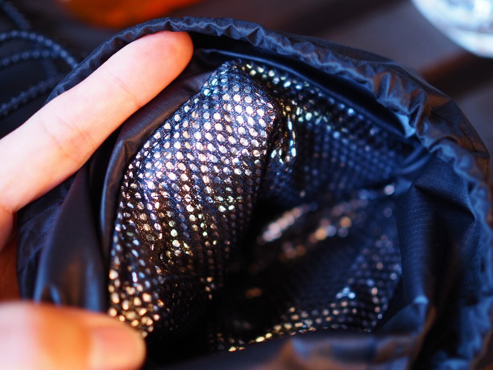 薄手で軽量ながらナイロンリップストップにつき丈夫です。