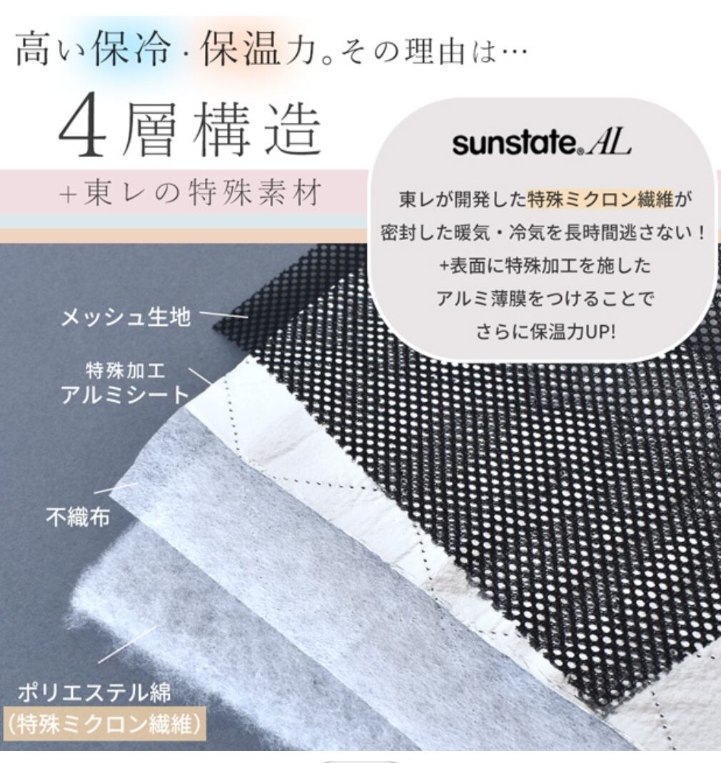 メッシュ、アルミシート、不織布、ポリエステル綿の